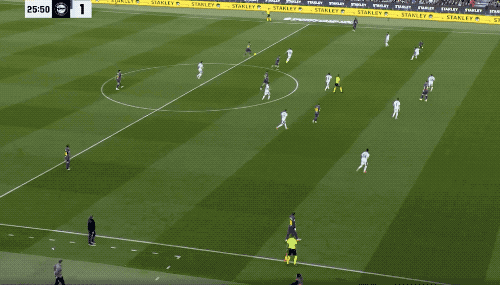 第44分钟,迪亚斯在倒地之后送出极限传球,格雷罗将比分扳平。